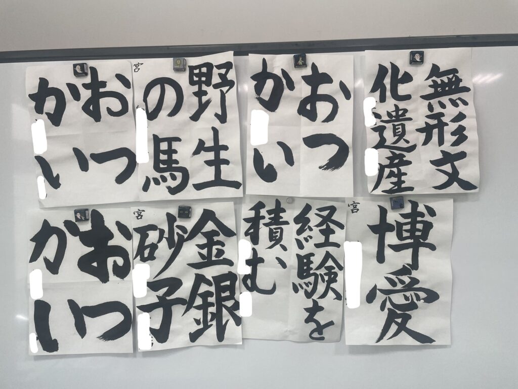 大人の方たちは、5月号、6月号のペン字、漢字、仮名の課題、千字文の課題に取り組みました。皆さん、お忙しい中、教室に来て、真剣に取り組んでくれています。